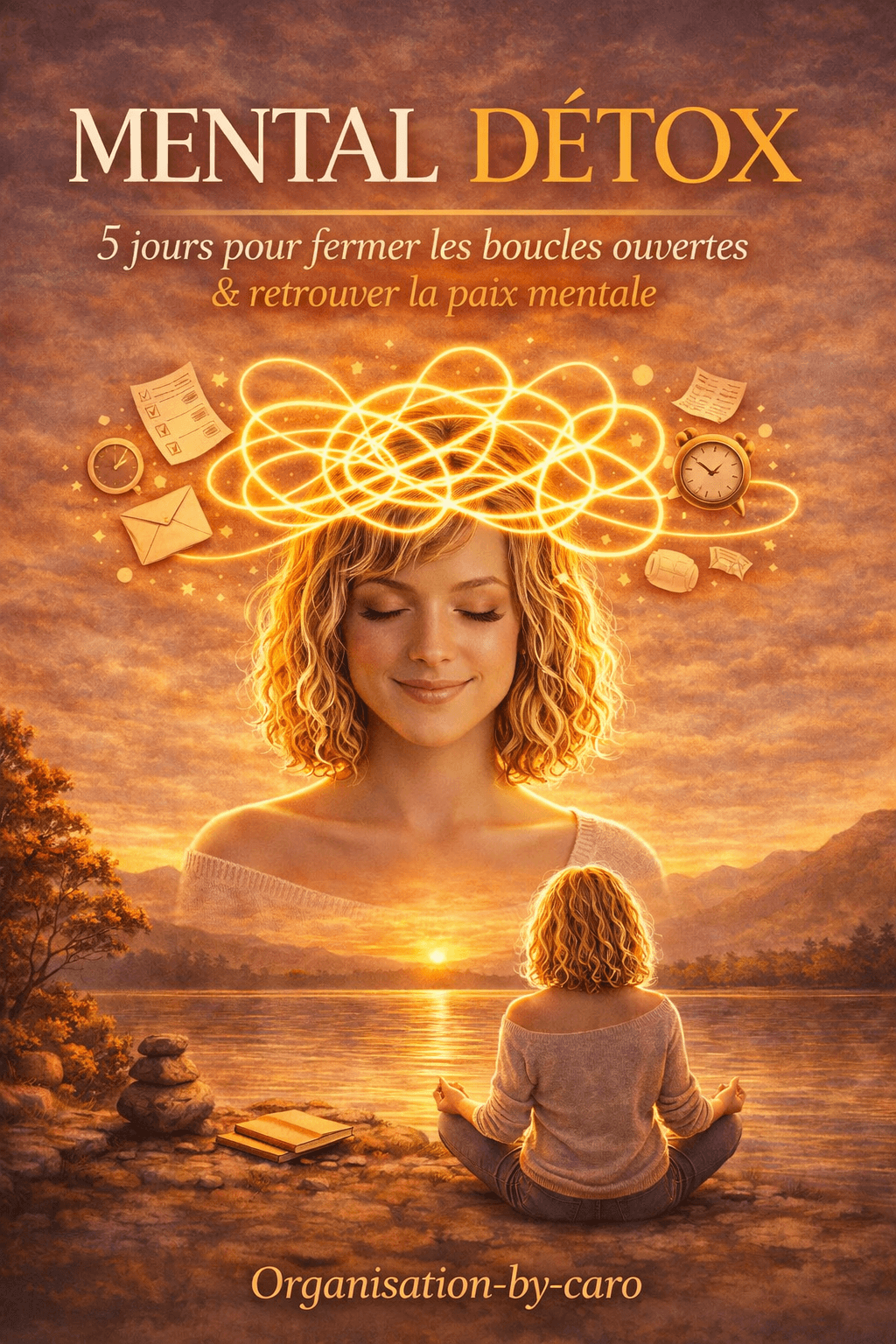 Mental Détox est une méthode guidée en 5 jours, avec des solutions concrètes pour reprendre le contrôle de ta maison, libérer ton esprit des pensées parasites.